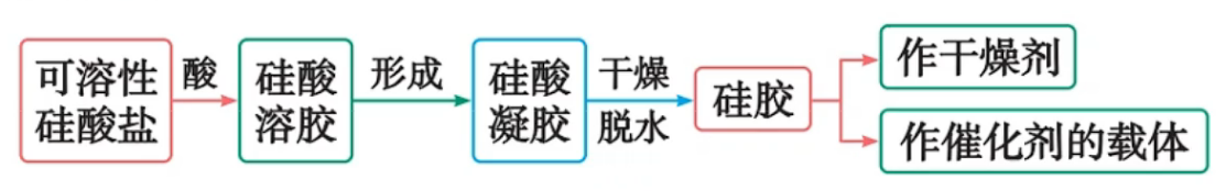 溶液不用玻璃塞) - 可以与酸(盐酸、碳酸等)反应,生成硅酸凝胶